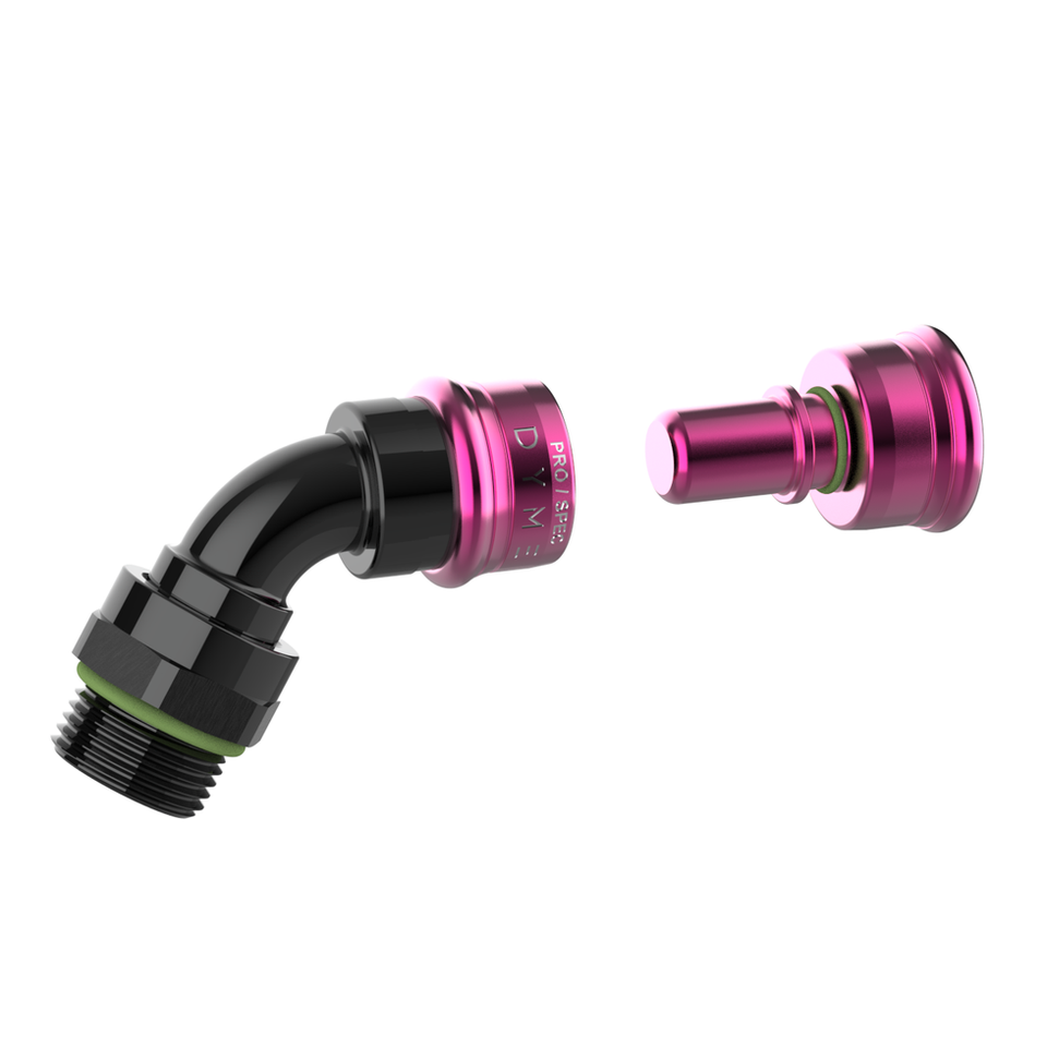 PRO/SPEC SEALING CAPS AND PLUGS FOR PRO/SPEC FITTINGS AND ADAPTERS TO SEAL OPEN ENDS AND PREVENT LEAKS. MALE PLUGS MECHANICALLY LOCK INTO THE FEMALE FITTINGS OF THE SAME SIZE, PLUGS ARE RETAINED BY THE INTERNAL O-RING ONLY. 6061-T6 BILLET ALUMINUM, PURPLE ANODIZED BODY.