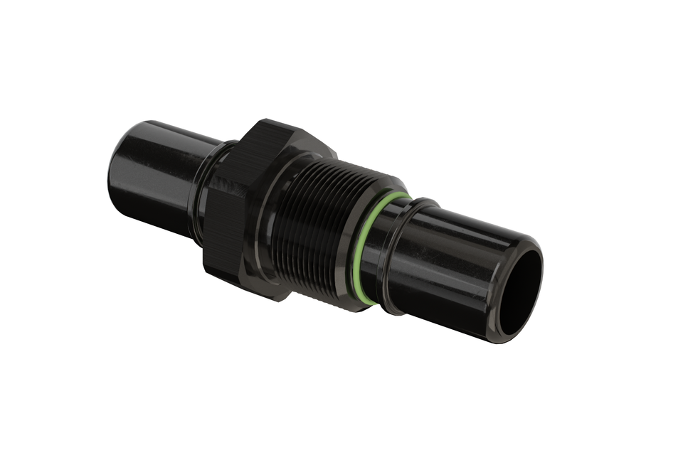 PRO/SPEC BULKHEADS AND COUPLERS FOR JOINING 2 FITTINGS, PS TO PS, PS TO AN, AND AN COUPLERS. 6061-T6 BILLET ALUMINUM, BLACK ANODIZED BODY.